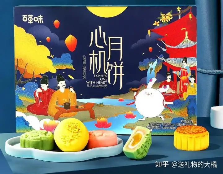 包装袋盒和月饼的式样反之亦然很漂亮,他们吃、送人都极好。