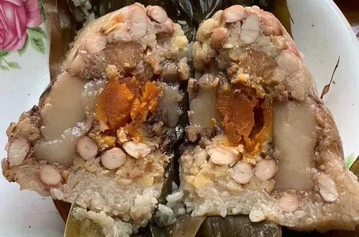 裹蒸粽料非常足,勐仑肉腌得超级入味,咸鸭鸡蛋既香又起沙。