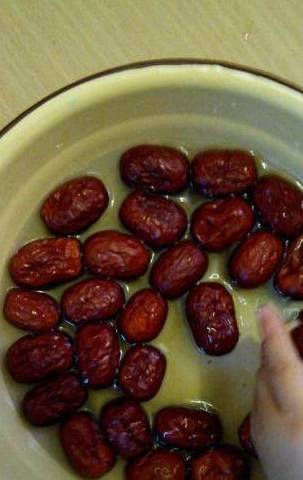 之后沿着锅的边缘倒入入一些水,水不要过多,太多就把枣给泡起来了,基本上就是刚刚能看到有水渗出的样子就好
