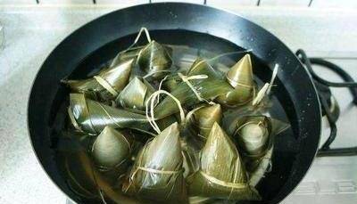 第四:煮粽子,煮粽子时一定加有小量的水,把粽子完全淹没,这种油面的粽子才更美味,粽香气更十足,煮粽子凉水烹煮,水开后继续煮1半小时,关火后煮沸1半小时,这种会完全爽口。