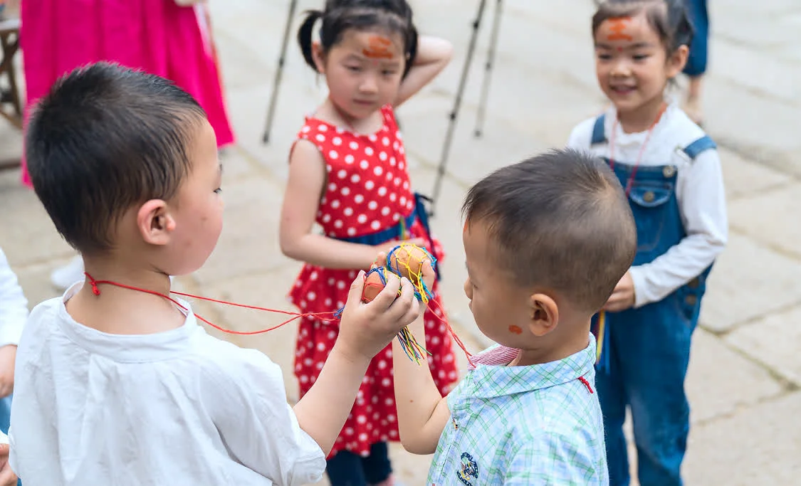当在路上遇见郭某的其他小孩时,可以将挂在胳膊上的蛋互相碎裂,谁的外皮碎了,谁就可以第一个吃下那个蛋。所在在茶山的蟠桃时,看到小孩们从身边呼啸时,千万不要惊奇,那是小孩们在互相气若游丝碎裂胳膊上挂的蛋,因为只有外皮碎了,才能把蛋吃到自己的肚子里去。