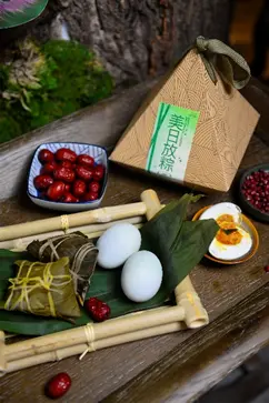 换用东北高质量黑土米饭,一年一产,经百日富晒,蒸煮后软糯有坚强意志,米香更醇,色泽更韧;采摘800米高山高质量夏伏野生箬叶,豆芽宽大,层次感柔和,色彩湛绿,把自然香气带入米饭中。