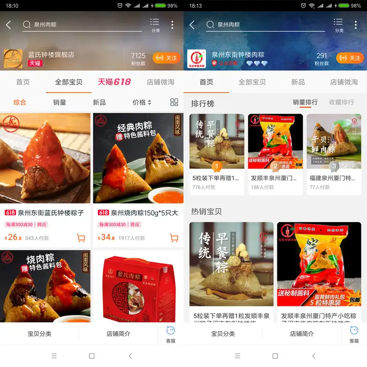 价格方面,饱记粽子的价格毫无疑问是最贵的,是另外两种粽子的两倍多,不外带,差不多三十元一只,不能零散购买,一次性就要购买一个礼盒。另外两种粽子都是均价十多元一只,还有各种外带折扣组合,结合在当地的门店店铺现吃的售价来看算是差不多的,比较合理。