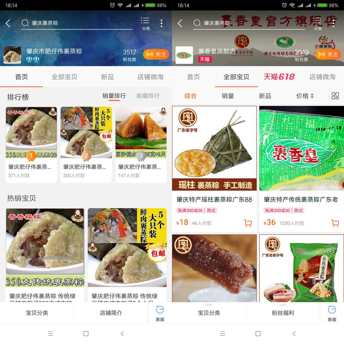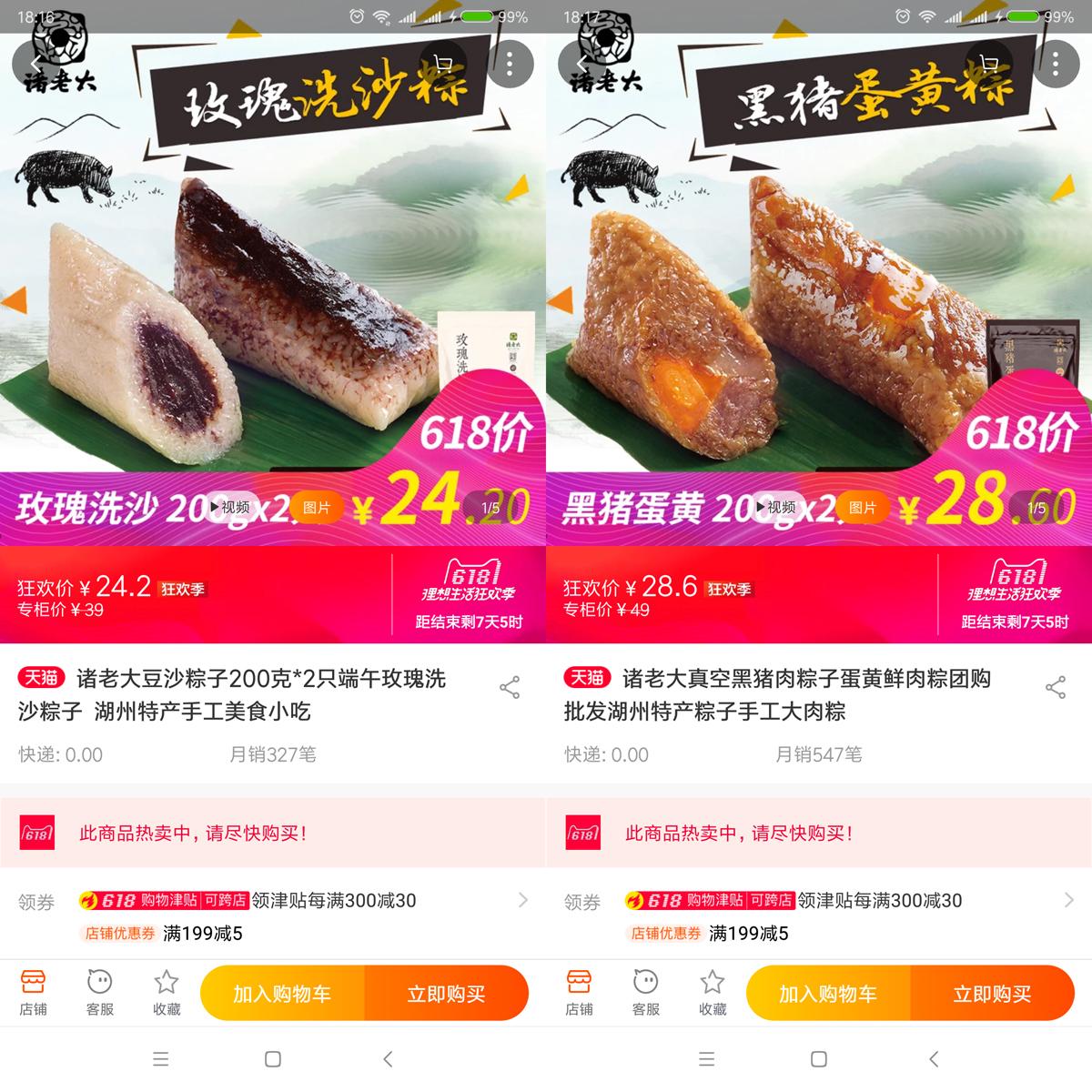 ▲ 包装:饱记粽子>皇中皇鲍鱼裹蒸棕≈西街塔楼鱼肉烧肉粽