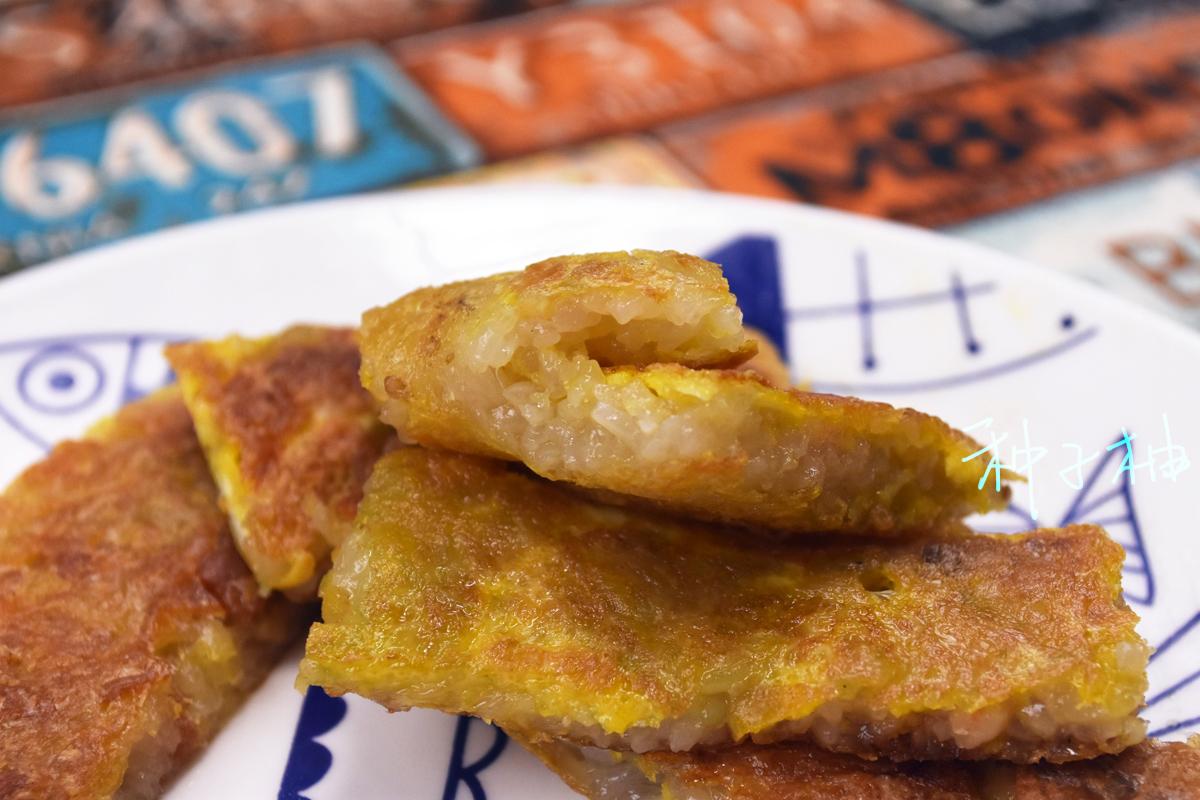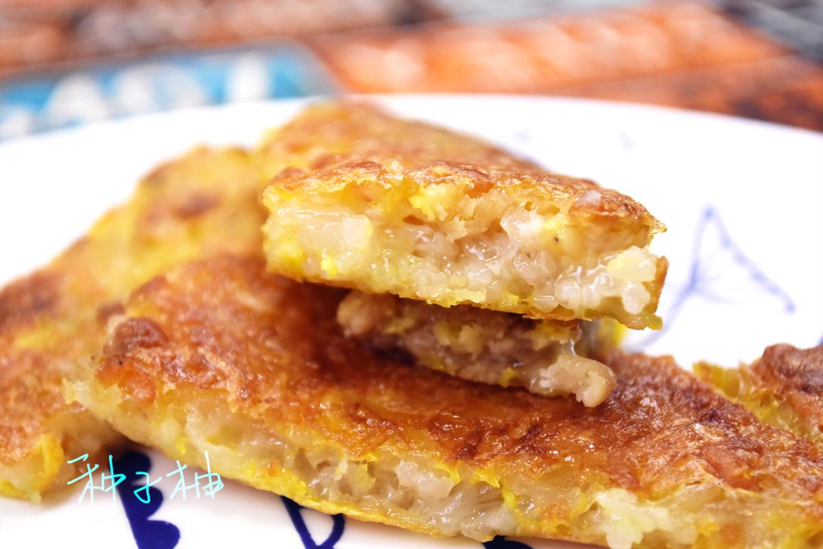 表面是金黄的,咬起来薄脆的两面,口感只有脆脆的和软软的,没有焦焦的和硬硬的,里面夹着松软的绿豆和米饭,蛋香、肉香和豆香,多样有层次。