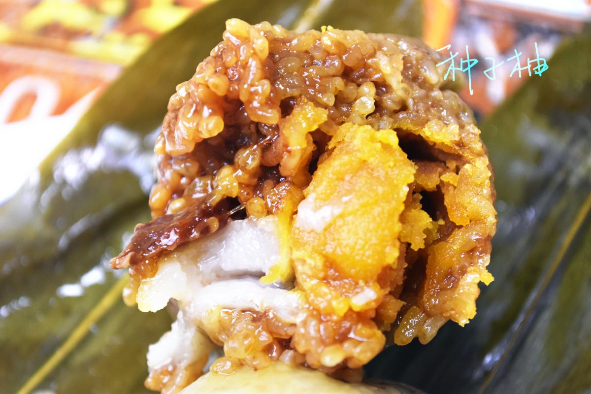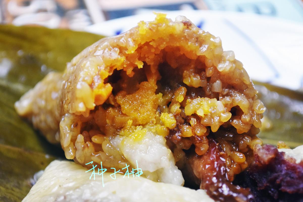 其实这只高邮双蛋黄黑猪花生粽的内里,才是这次吃的三款粽子里面含油最多样的,肉蛋皆流沙流油。