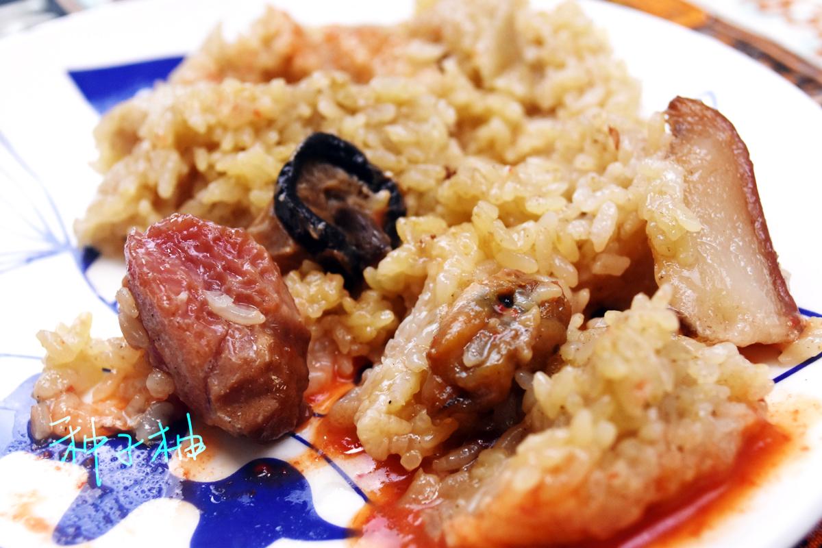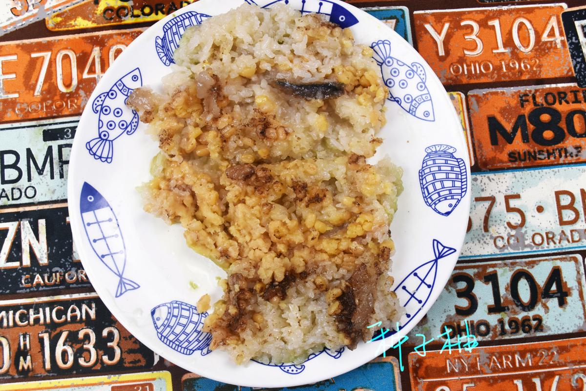 米饭比较清淡,拌米饭用的是特制卤水,含有链珠干、鱼肉、花生、瘦肉、带皮肥肉各一块:
