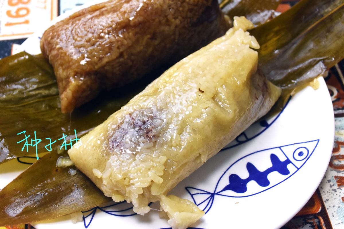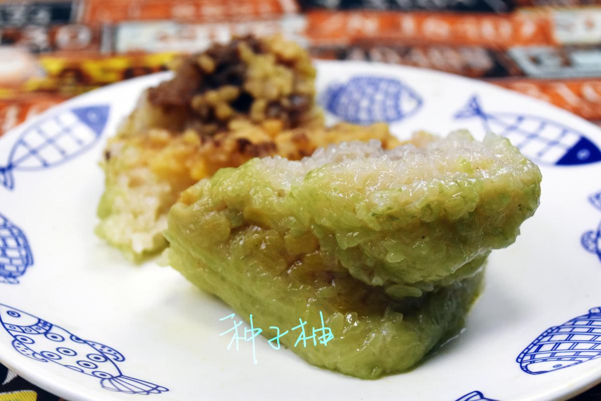 粽子的米饭是清香的,渗入了绿色的柊叶汁液: