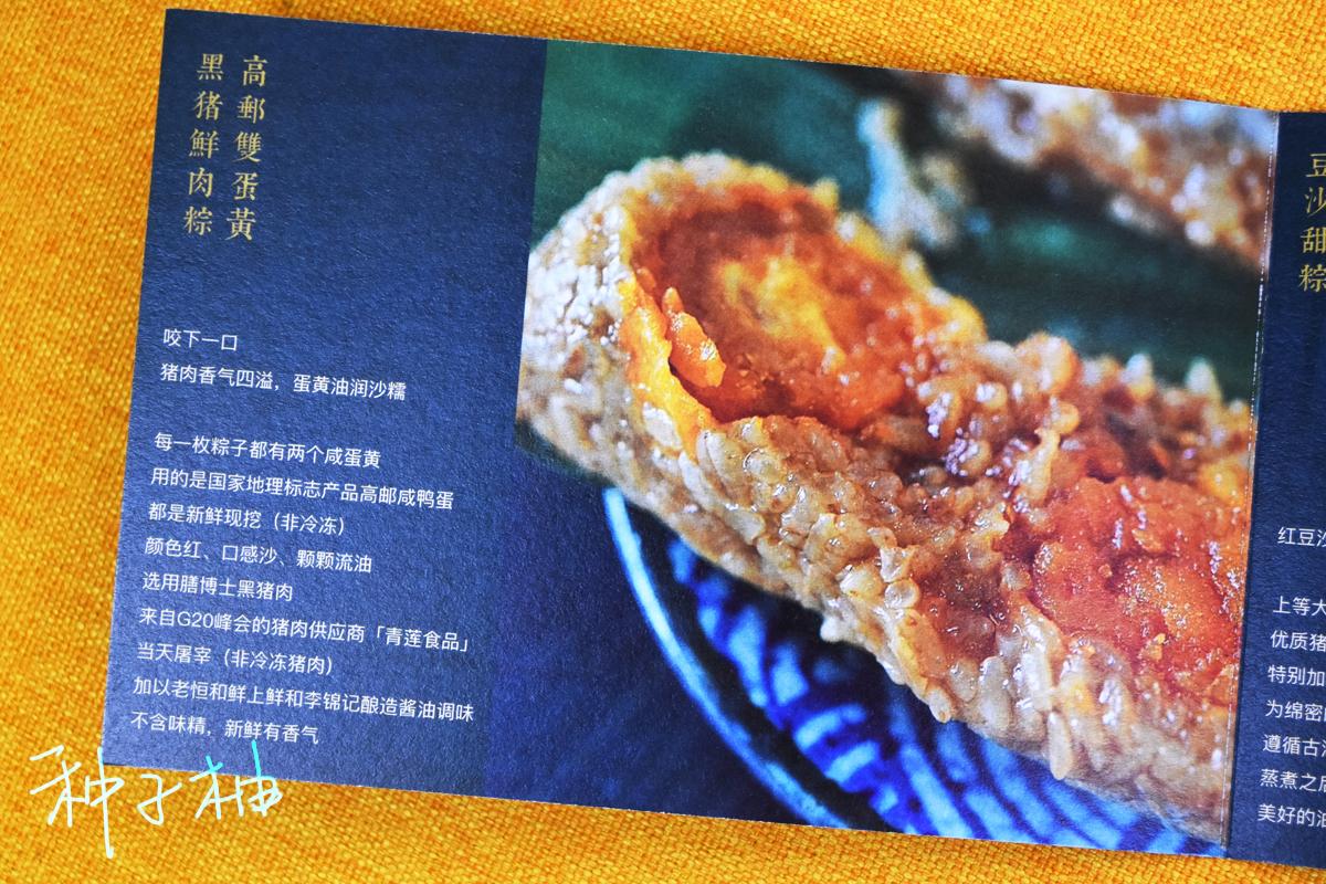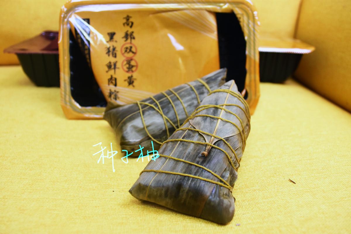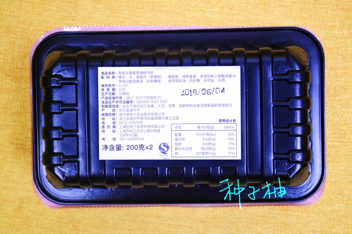 店家号称腌制黑鸡蛋的酱油选用的是湖州老恒和鲜上鲜酱油,黑鸡蛋选用的是嘉兴海盐膳博士黑毛鸡蛋的后腿肉,每只粽子包含两个蛋黄,现挖的新鲜高邮咸鸭蛋蛋黄。