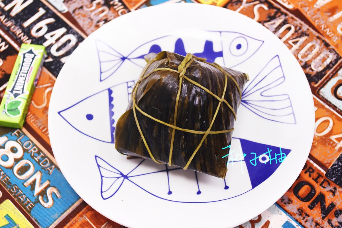 不抽真空的大肉粽有个优点,表面拿起来非常干净清爽,微微偏干,手不沾油。不像我们打开抽真空的大肉粽包装以后,取出粽子往往沾上满手的油花,挤压到了粽叶的表面,黏糊糊的。