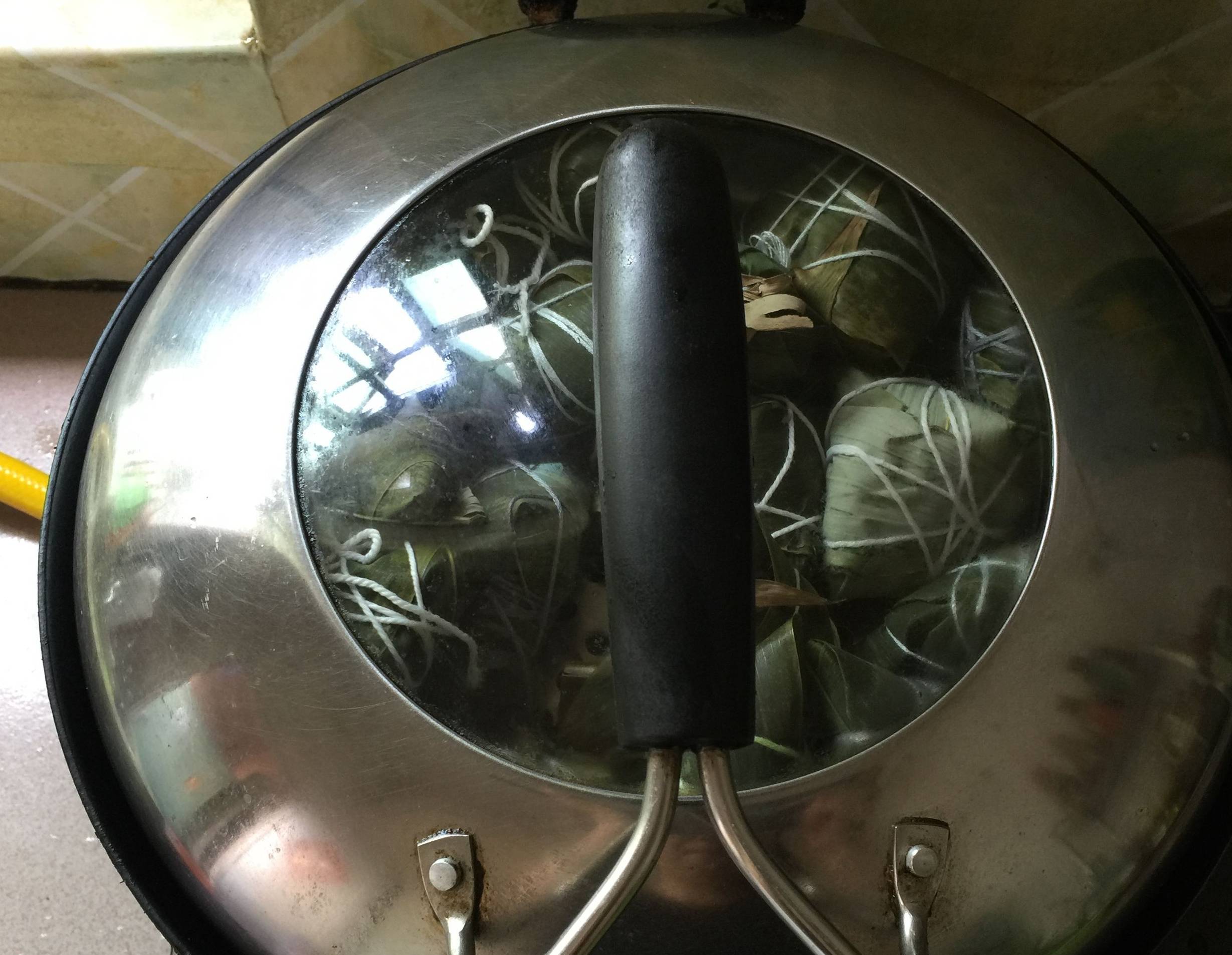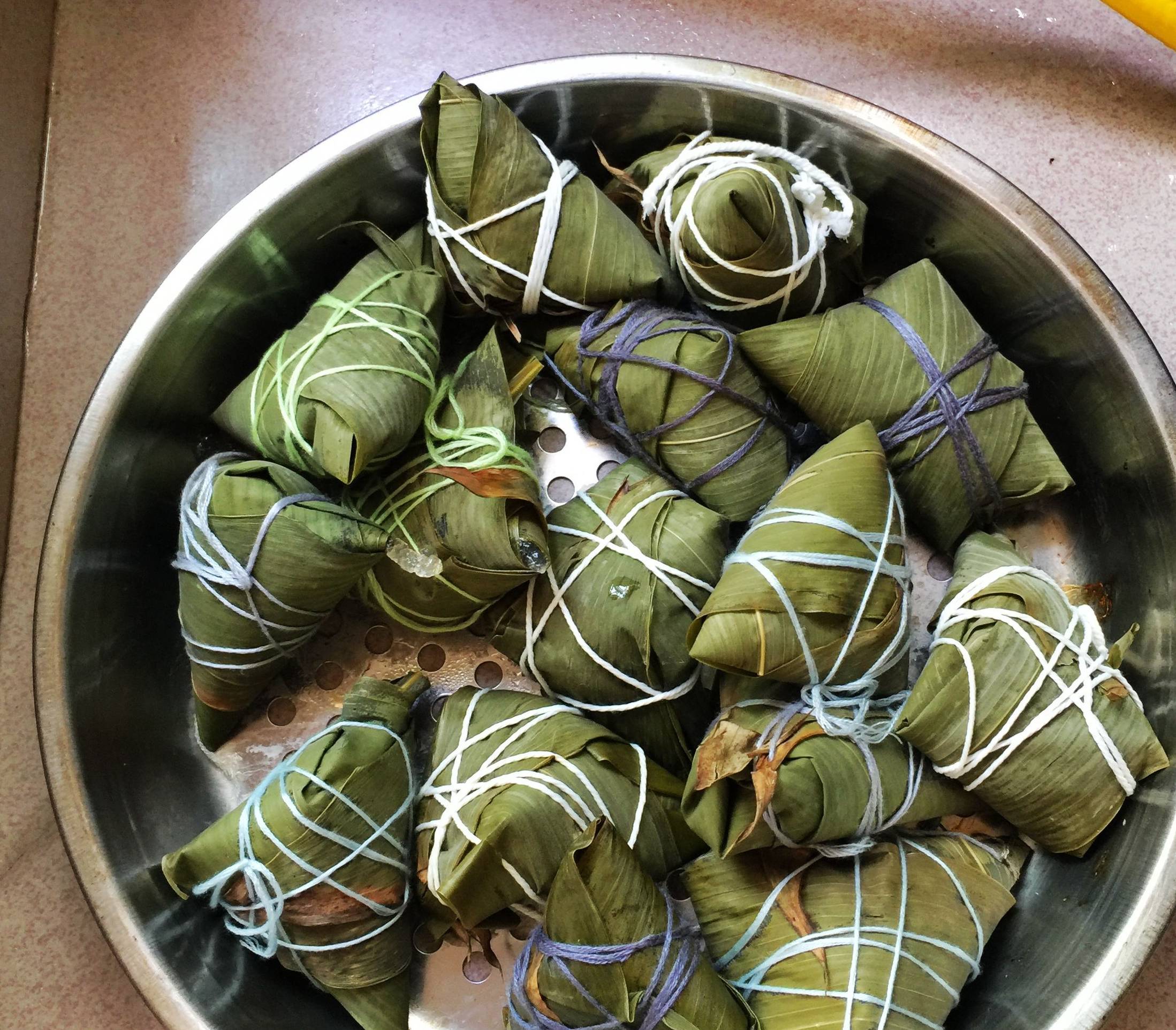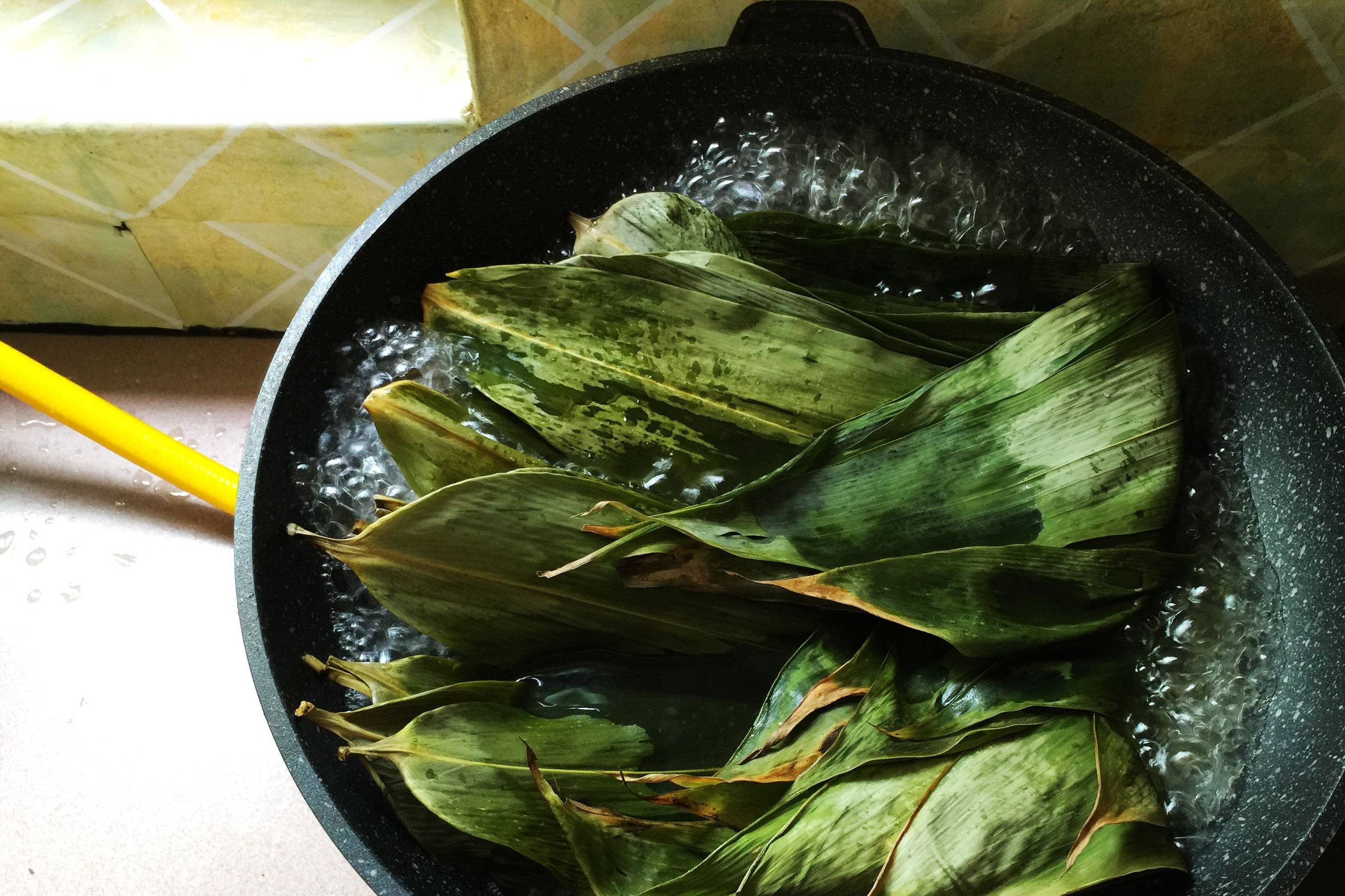 13:包好的粽子,摆入蒸盘上,冷水上锅,用大火蒸30两分钟。