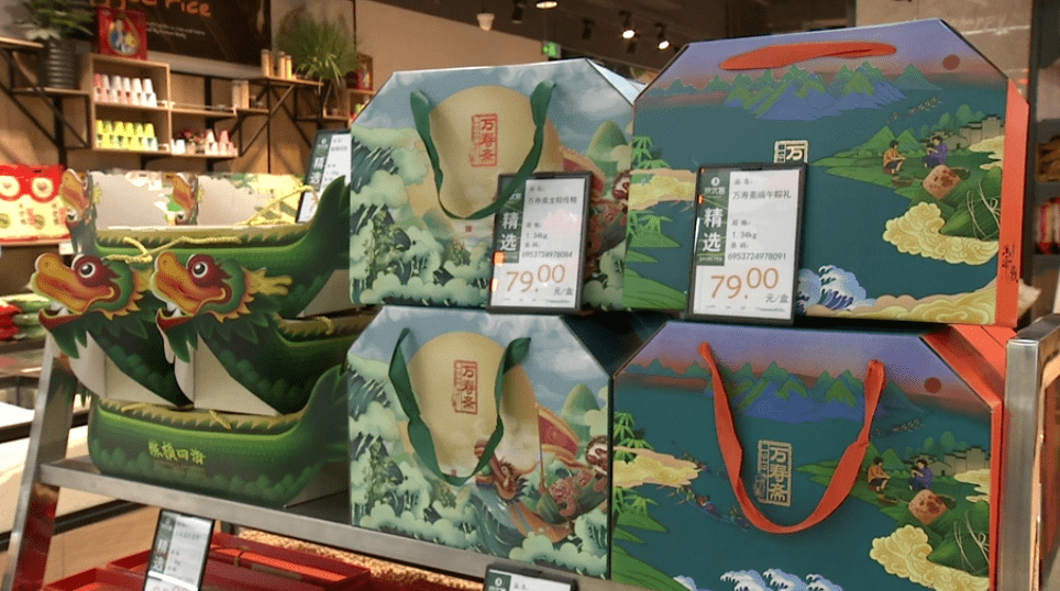 在城外京FamilyMart大型超市,本报记者看见,端午节主题的展位摆到了显眼的位置,各式各样礼盒装的粽子各式各样,让顾客感受到了浓浓端午气氛。