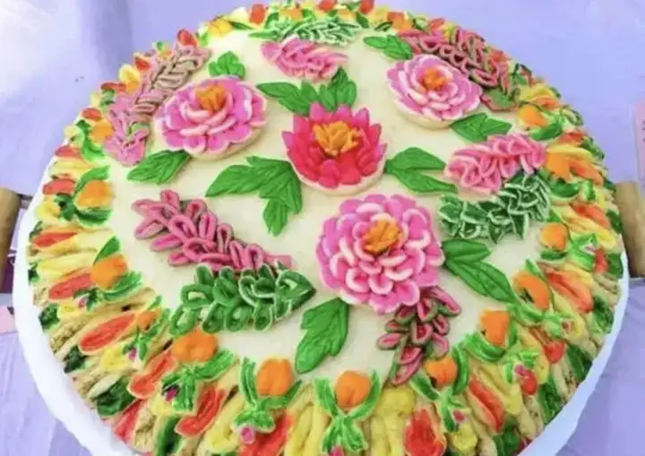 在西宁以及邻近地区的农村,单厢自己做一种蒸出来的月饼,叫西宁“土月饼”,是很多老西宁人独有的梦境。它还有着一些更朴实的名字,比如“菱角月饼”“西宁花葱”等,其外形大如铁板,表面有蝴蝶、蝎子、蛇和花朵等刺绣,惟妙惟肖。